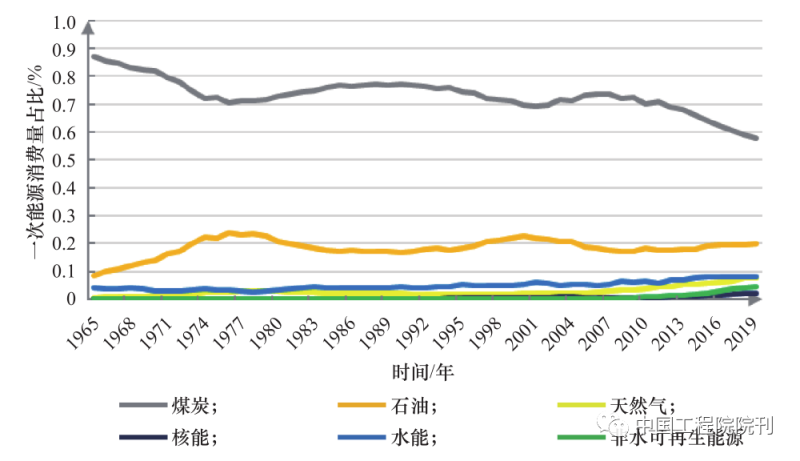圖5 中國(guó)一次能源消費(fèi)結(jié)構(gòu)變化曲線
