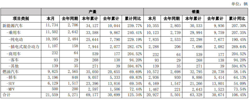 2月比亞迪新能源汽車(chē)產(chǎn)量11734輛,同比增長(zhǎng)333.63%。今年新能源汽車(chē)?yán)塾?jì)產(chǎn)量34127輛,同比增長(zhǎng)239.77%;
