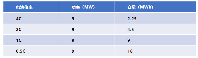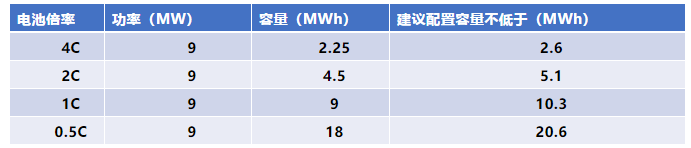 僅從應用需求考慮,應該使用至少4C以上的電池,當然,2C電池配置功率滿足要求的情況下,也可以干4C的活,并且電量更足。同理,1C甚至更低倍率的電池,只要配置功率夠了,都可以滿足調頻應用需求。以30萬機組,配置9MW儲能系統(tǒng)為例,不同倍率電池的配置方案如下: