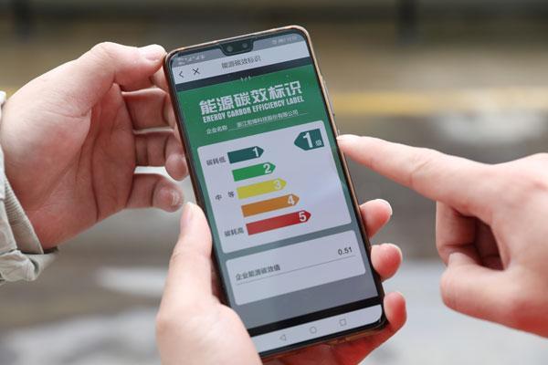 圖說:通過浙里辦APP中的“企業(yè)碼”可查詢企業(yè)自身“能源碳效標(biāo)識”。湯天承 攝