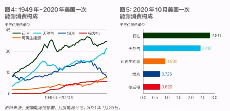 要實(shí)現(xiàn)碳達(dá)峰和碳中和,就必須相應(yīng)地調(diào)整能源結(jié)構(gòu),1949年以來(lái),美國(guó)能源消費(fèi)結(jié)構(gòu)持續(xù)優(yōu)化。