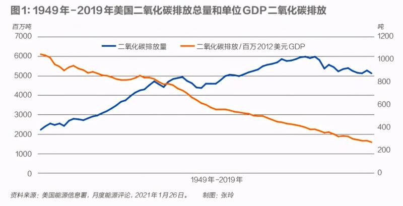 美國(guó)一次能源消費(fèi)的達(dá)峰比碳排放達(dá)峰晚11年,2018年才達(dá)峰。