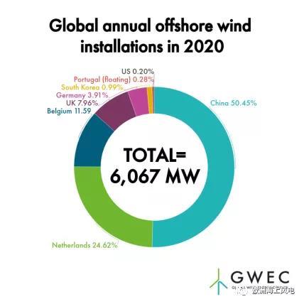 根據(jù)全球風(fēng)能委員會(huì)GWEC發(fā)布的最新數(shù)據(jù),2020年全球海上風(fēng)電新增裝機(jī)容量6.067GW,其中中國新增容量超過3GW,占全球新增一半以上。這是中國連續(xù)第三年在海上風(fēng)電年新增裝機(jī)容量方面居世界首位。