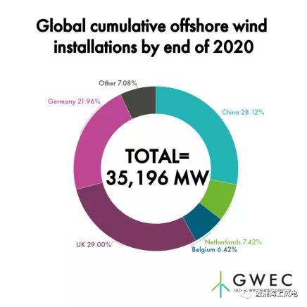 截至2020年底,全球海上風(fēng)電裝機(jī)已經(jīng)超過35GW,幾乎是五年前的三倍。英國的海上風(fēng)電裝機(jī)容量為10.206GW,穩(wěn)居第一;中國以僅少于英國308MW的9.898GW裝機(jī)總量,超過德國居全球第二。