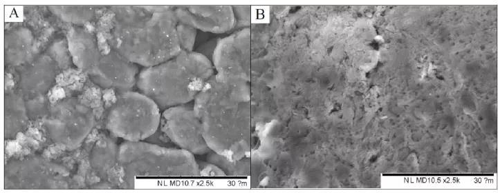 圖六:HB2負(fù)極在經(jīng)過(guò)5000脈沖后的SEM電鏡照片:A)石墨顆粒和B)氧化物測(cè)