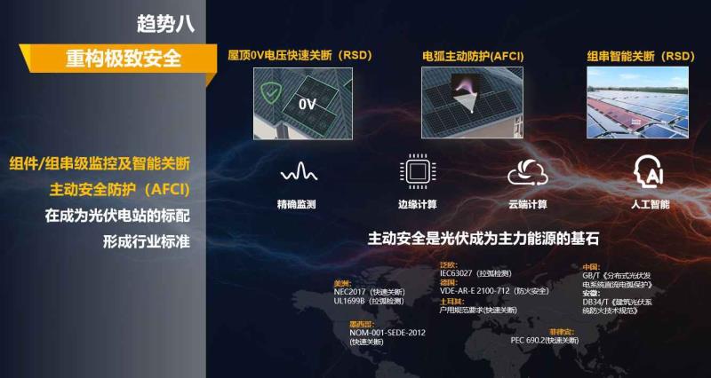 組件/組串級監(jiān)控及智能關(guān)斷、主動安全防護(hù)(AFCI),將成為光伏電站的標(biāo)配,并形成統(tǒng)一的行業(yè)標(biāo)準(zhǔn)。