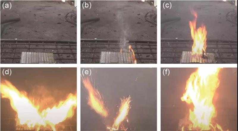 圖5 從底部加熱鋰電池組時的燃燒現(xiàn)象