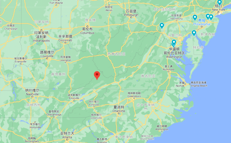 五個縣位于弗吉尼亞州西部,該地區(qū)西南距離亞特蘭大約400公里。東北距華盛頓600公里。