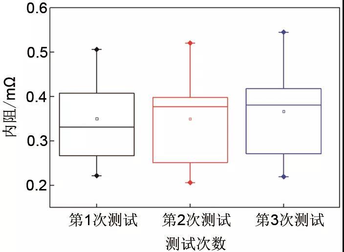 (3)計(jì)算各單體的直流內(nèi)阻,并通過(guò)箱型圖進(jìn)行一致性分析;