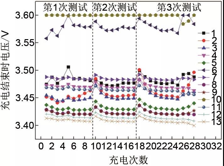 圖12 第3次測(cè)試中2號(hào)模組的電壓曲線