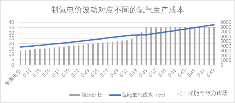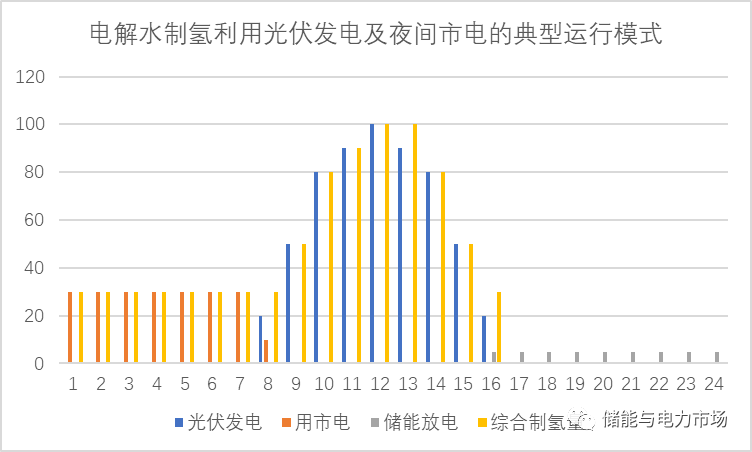 每天日間用光伏發(fā)電制氫滿負荷運行,夜間16小時制氫根據(jù)市場變動的電價進行電力交易。比如在夜間風電大發(fā)的時候可在預(yù)設(shè)電價以下時滿負荷生產(chǎn),預(yù)設(shè)電價以上時則降低生產(chǎn)負荷(氫氣產(chǎn)量需滿足最低市場需求)。