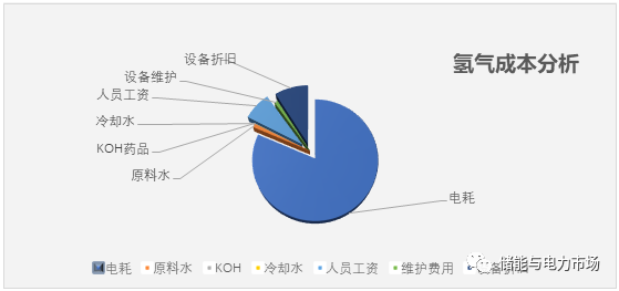 大同市制氫加氫一體站為國內(nèi)首例于2019年投運,制氫采用500方/小時堿性電解水裝置。根據(jù)實際運行數(shù)據(jù),分析電解水制氫的成本構(gòu)成如下。
