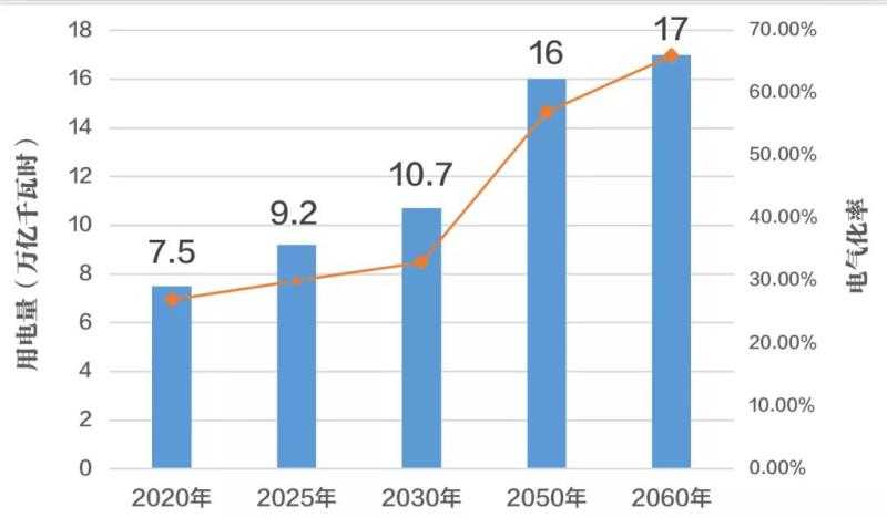 ▲2020-2060年用電量和電氣化率 (數(shù)據(jù)來源:《中國2060年前碳中和研究報告》)