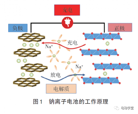 鈉離子電池的結(jié)構(gòu)及工作原理如圖1所示。鈉離子在電解液中可以在正極與負(fù)極之間可逆地遷移,正極和負(fù)極均由允許鈉離子可逆地插入和脫出的插入型材料構(gòu)成。因此,鈉離子電池同鋰離子電池一樣被稱作“搖椅式電池”。由于鈉與鋁無法形成合金,鋁箔可以代替銅箔作為鈉離子電池陽極的集流體。這將有助于進(jìn)一步降低電池成本,提高能量密度。