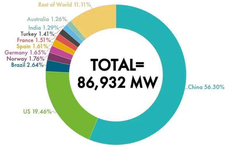 2021年3月25日,全球風(fēng)能委員會(huì)(GWEC)發(fā)布了《2021年全球風(fēng)能報(bào)告》。報(bào)告顯示2020年全球新增風(fēng)電裝機(jī)93GW,同比增長53%,創(chuàng)造了新的紀(jì)錄。其中2020年全球陸上風(fēng)電共新增86932MW,中國新增的陸上風(fēng)電就占到了56.3%。