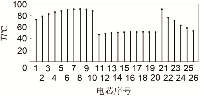 (2)空調(diào)停運(yùn)時(shí),模組內(nèi)某一單體熱失控以后會(huì)引發(fā)與其串聯(lián)的電芯及與其間距為2 mm的并聯(lián)電芯熱失控。