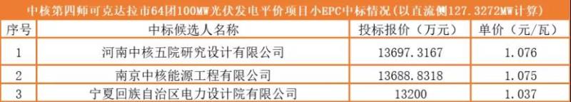 需要注意的是,下述中廣核兩個(gè)項(xiàng)目招標(biāo)公告中要求的并網(wǎng)日期分別為2020年12月30日前和2020年11月20日前完成全部并網(wǎng)發(fā)電,且項(xiàng)目最終并網(wǎng)節(jié)點(diǎn)不可更改;但是兩個(gè)項(xiàng)目的EPC中標(biāo)卻是在近日公示。光伏們查詢了相關(guān)的招標(biāo)公告及公示情況,暫未獲悉其中原因,故該價(jià)格僅供參考。