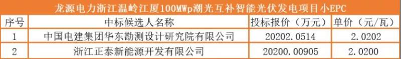 以龍?jiān)措娏φ憬瓬貛X100MW潮光互補(bǔ)項(xiàng)目為例,在日前的組件開標(biāo)中,正泰以1.73元/瓦的單價(jià)位列第一中標(biāo)候選人,第二中標(biāo)候選人的報(bào)價(jià)為1.76元/瓦。加上小EPC報(bào)價(jià)2.02元/瓦,整個(gè)EPC造價(jià)為3.75元/瓦,仍在組件漲價(jià)前的EPC報(bào)價(jià)范圍內(nèi)。
