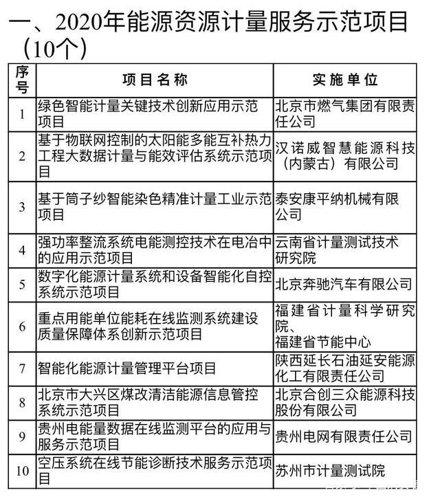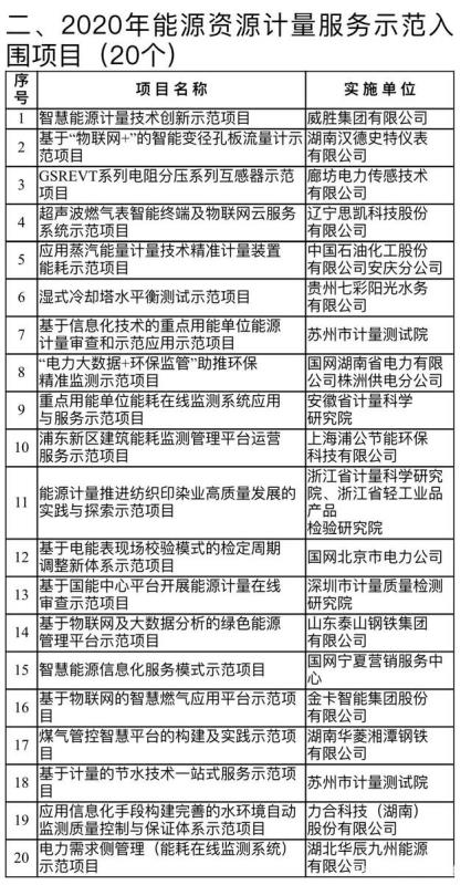 2020年能源資源計(jì)量服務(wù)示范項(xiàng)目和入圍項(xiàng)目名單