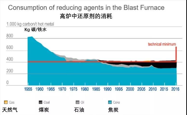 歐盟鋼鐵行業(yè)通過技術(shù)的優(yōu)化和創(chuàng)新,實(shí)現(xiàn)了很高的資源效率。但是值得注意的是,隨著技術(shù)的進(jìn)步,當(dāng)前高爐練鋼的流程已經(jīng)接近熱力學(xué)極限,其產(chǎn)生的二氧化碳已經(jīng)降低到了技術(shù)最小值。因此能源效率的進(jìn)一步提高和二氧化碳排放的減少,需要根本性的突破性技術(shù)。