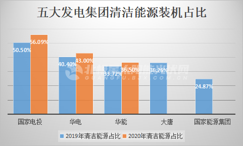 2020年底,華電清潔能源裝機占比為43%,是五大發(fā)電集團中第二家清潔能源占比超過40%的企業(yè),僅次于國家電投?!?025年非化石能源占比達50%”新目標的提出,意味著華電需在5年將清潔能源占比提升6%以上。在此目標下,華電將加大力度發(fā)展風光電,光伏整體規(guī)模將再上新臺階。