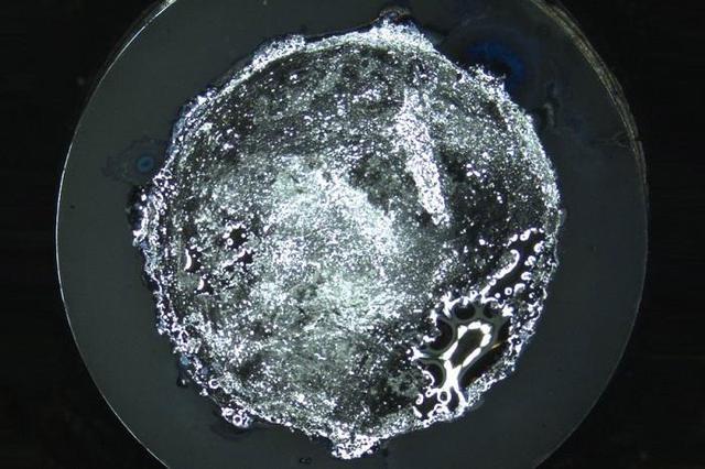 然而正如上圖所展示的那樣,位于固體電解質(zhì)的灰色圓盤上的金屬電極(帶有紋理的內(nèi)圈部分),正在其表面上形成讓鋰電池研究人員頭疼不已的枝晶。