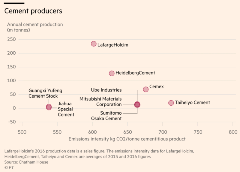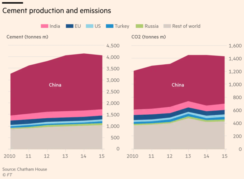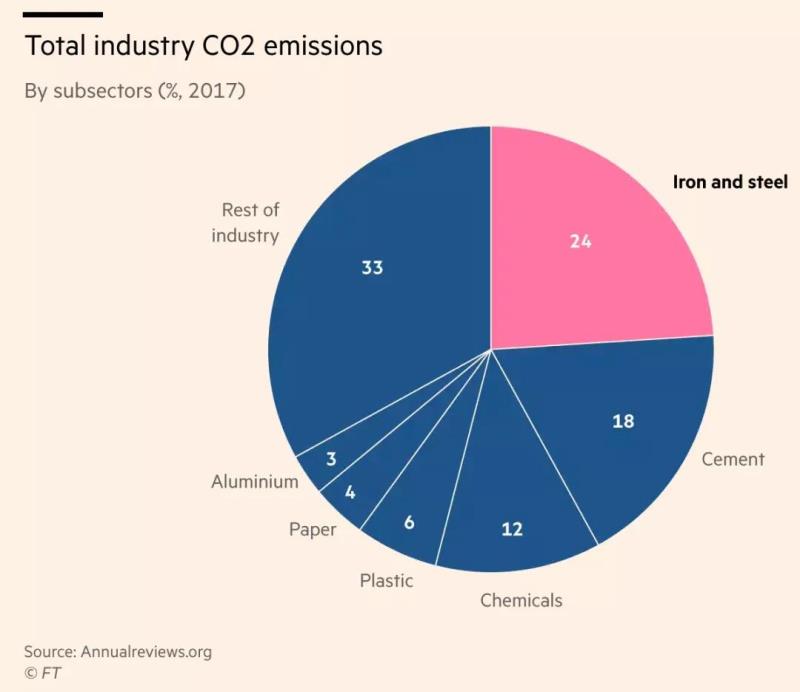 鋼鐵、水泥和石化等行業(yè)在生產(chǎn)過(guò)程中需要極高的熱量,碳足跡巨大。世界鋼鐵協(xié)會(huì)(World Steel Association)的數(shù)據(jù)顯示,鋼鐵占化石燃料直接排放總量的7%-9%,每生產(chǎn)1噸平均產(chǎn)生1.83噸二氧化碳。水泥約占全球排放總量的8%。