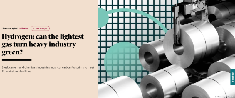 英國(guó)《金融時(shí)報(bào)》發(fā)表文章,題目是:氫:最輕的氣體能使重工業(yè)變綠嗎?(Hydrogen: can the lightest gas turn heavy industry green?)