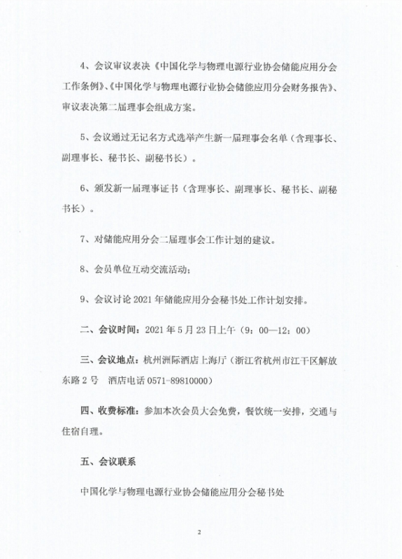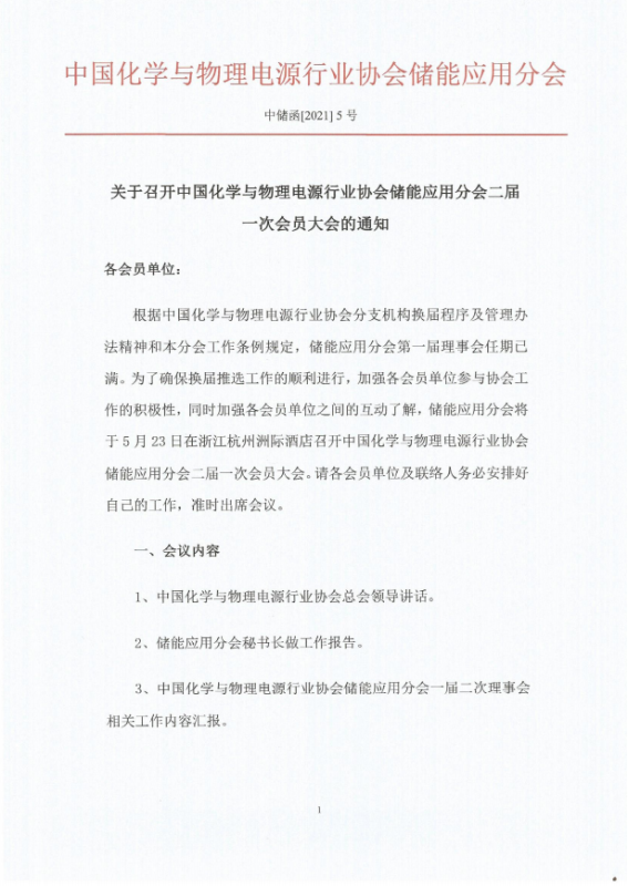 關(guān)于召開中國(guó)化學(xué)與物理電源行業(yè)協(xié)會(huì)儲(chǔ)能應(yīng)用分會(huì)二屆一次會(huì)員大會(huì)的通知