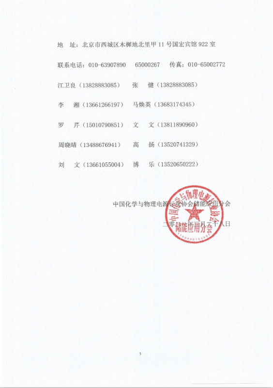 中國(guó)化學(xué)與物理電源行業(yè)協(xié)會(huì)儲(chǔ)能應(yīng)用分會(huì)秘書處