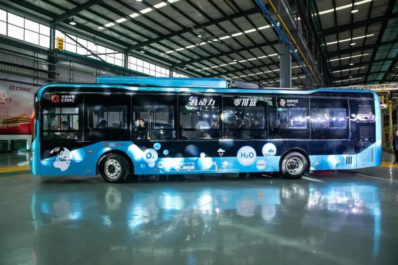 ▲ 國家電投與中國中車聯(lián)合研發(fā)的氫燃料電池城市客車