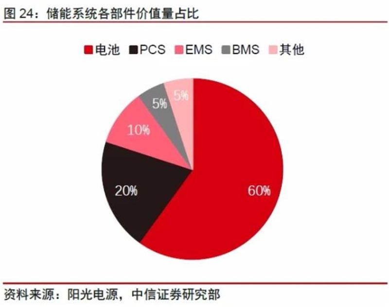 在鋰電池儲(chǔ)能系統(tǒng)中,成本占比最高的三個(gè)部件分別是鋰電池、PCS(逆變器)和BMS(電池管理系統(tǒng)),其中,電池成本占據(jù)系統(tǒng)總成本的比例超過(guò)60%。