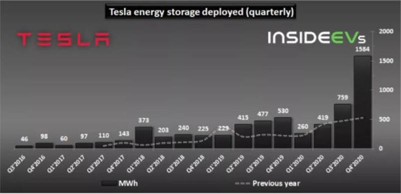 事實(shí)上,即使沒(méi)有“得州大停電”的推波助瀾,特斯拉儲(chǔ)能產(chǎn)品也已呈現(xiàn)出爆發(fā)式增長(zhǎng)。