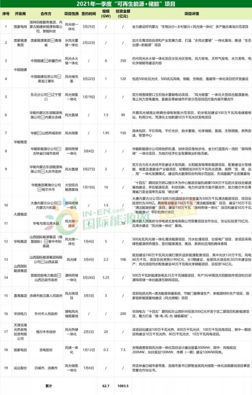 2021年一季度中,各地政府、開發(fā)商動(dòng)作頻頻,紛紛出臺(tái)相關(guān)政策、簽訂“風(fēng)光儲(chǔ)一體化”相關(guān)項(xiàng)目,助力新能源為主體的新型電力系統(tǒng)的早日實(shí)現(xiàn)。