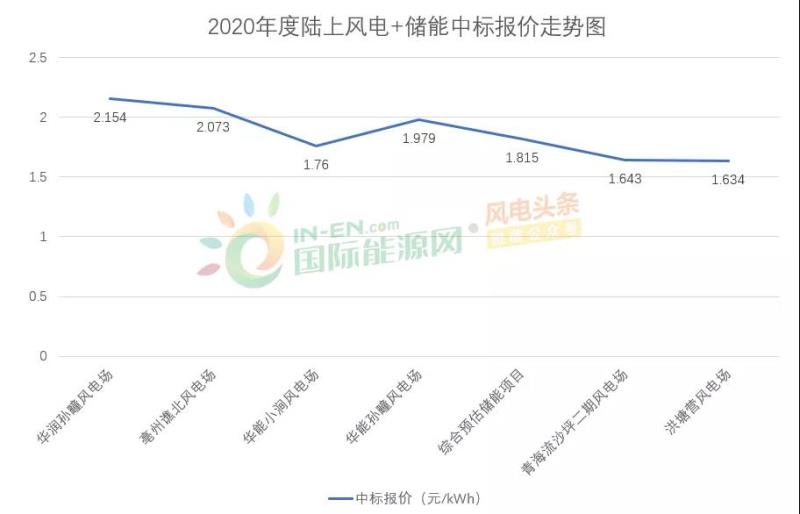 據(jù)國(guó)際能源網(wǎng)/風(fēng)電頭條(微信號(hào):wind-2005s)此前統(tǒng)計(jì),2020年開標(biāo)的7個(gè)“風(fēng)電+儲(chǔ)能”項(xiàng)目中,從年初的華潤(rùn)濉溪孫疃風(fēng)電場(chǎng)到年末的洪塘營(yíng)風(fēng)電場(chǎng)項(xiàng)目,儲(chǔ)能建設(shè)單價(jià)從2.154元/kWh下降至1.634元/kWh,降幅達(dá)到24.14%。