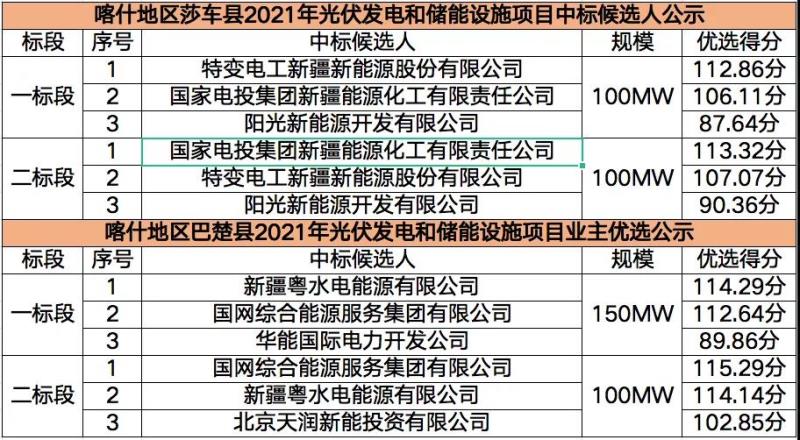 喀什地區(qū)巴楚縣2021年光伏發(fā)電和儲能設(shè)施項目二標(biāo)段優(yōu)選結(jié)果如下: