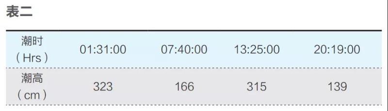 海上電站建設(shè)地點為岸線近海,包括大陸岸線及海島岸線近海,海上電站建設(shè)地點以海深超過最低潮位1-2m即可,即在最低潮時不露出海底仍有正常海浪起伏,例如浙江舟山沈家門2021年2月19日潮汐情況(表二)。實際建設(shè)中潮汐要以全年最大潮汐潮位為依據(jù),按此推算,海上電站建設(shè)海深按平潮最大不超過8m,較海上風電場建設(shè)海深5-50m比較海深較淺。