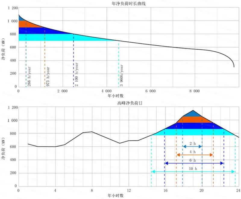 在本實(shí)例研究中,正如Stenclik 等人(2018)所述,必須考慮尖峰負(fù)荷減少的時(shí)長(zhǎng)效應(yīng)。這種效應(yīng)意味著儲(chǔ)能的時(shí)長(zhǎng)與本應(yīng)用有關(guān)。比如,在美國(guó),因?yàn)殡姵貎?chǔ)能可以提供4小時(shí)以上的放電時(shí)間,所以被認(rèn)為是一種可靠容量來(lái)源。如果少量的儲(chǔ)能可以覆蓋一定的高風(fēng)險(xiǎn)尖峰時(shí)段,這種假設(shè)是正確的。但是,當(dāng)儲(chǔ)能比例增加后,用于替代調(diào)峰電廠(chǎng)的4小時(shí)儲(chǔ)能的效用會(huì)降低,儲(chǔ)能時(shí)長(zhǎng)必須增加。