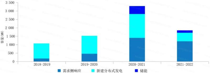 圖1 2018~2022年英國(guó)在容量市場(chǎng)競(jìng)價(jià)成功的分布式容量