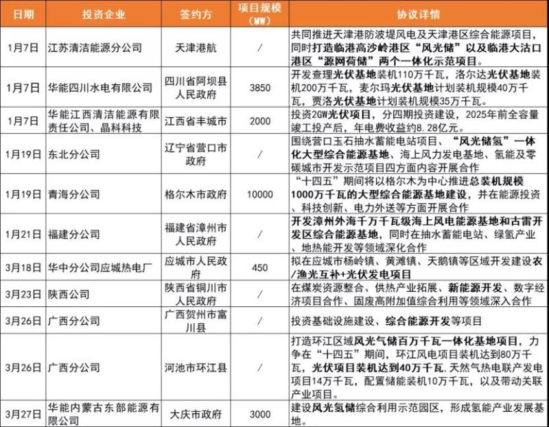 據(jù)光伏們不完全統(tǒng)計,步入2021年,華能集團已與青海、四川、江西、黑龍江等多省簽訂合作開發(fā)協(xié)議,其中涉及光伏項目、抽水蓄能項目、“風(fēng)光儲”及“源網(wǎng)荷儲”示范項目等。