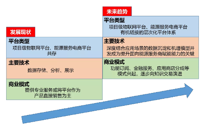 (一)平臺(tái)類型上,當(dāng)前項(xiàng)目級(jí)物聯(lián)網(wǎng)平臺(tái)、能源服務(wù)電商平臺(tái)共存,未來二者有機(jī)鏈接的層次化平臺(tái)體系成為重要發(fā)展方向