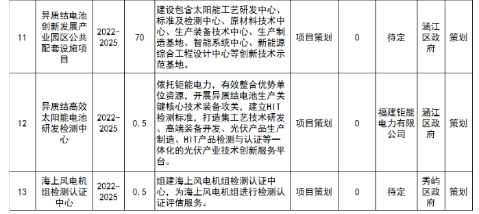 福建(莆田)新能源產(chǎn)業(yè)創(chuàng)新示范區(qū)重點(diǎn)項(xiàng)目匯總表