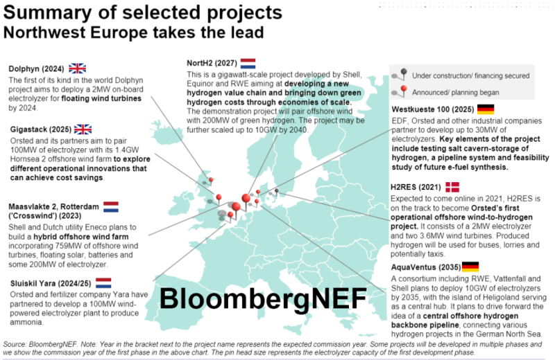 海上風(fēng)電制氫技術(shù)成本高昂,且具體可行性有待驗證。彭博新能源財經(jīng)預(yù)計,到2025年,海上風(fēng)電制氫市場中的主流仍將是試點項目,旨在證明項目的技術(shù)和經(jīng)濟(jì)可行性。政策和監(jiān)管支撐對推動海上風(fēng)電制氫商業(yè)化及覆蓋項目溢價是不可或缺的。