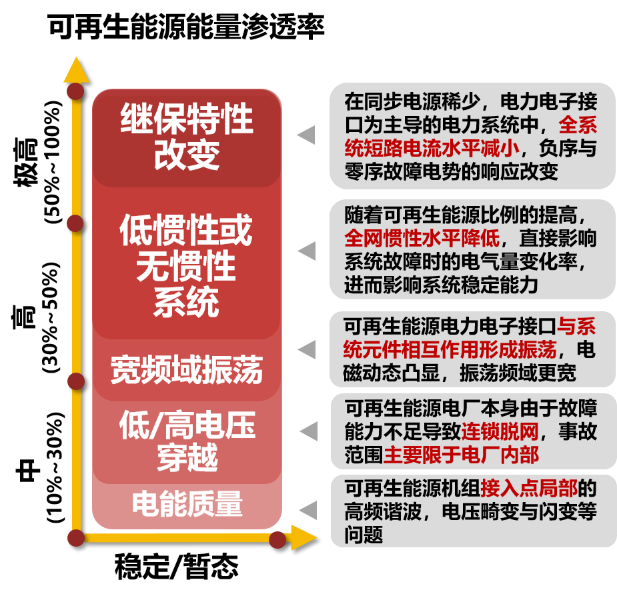 圖2 高比例可再生能源滲透對系統(tǒng)穩(wěn)定與保護的挑戰(zhàn)