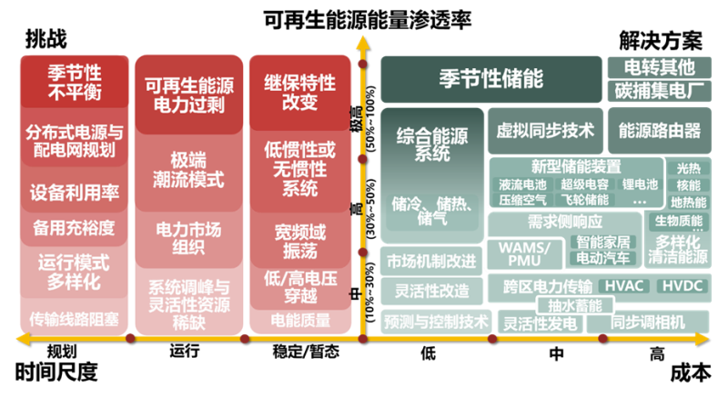 圖9 高比例可再生能源挑戰(zhàn)與技術(shù)解決方案對應(yīng)關(guān)系