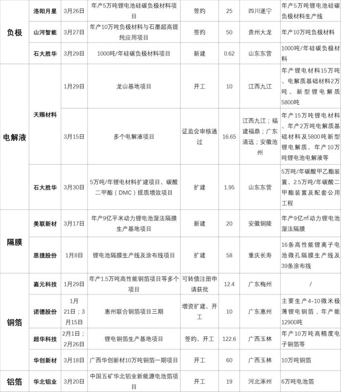 具體來看,2021Q1鋰電行業(yè)投擴產(chǎn)項目主要有以下特點: