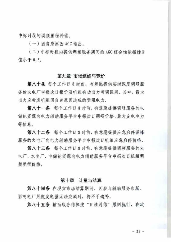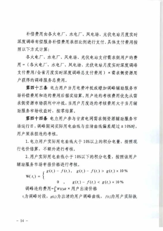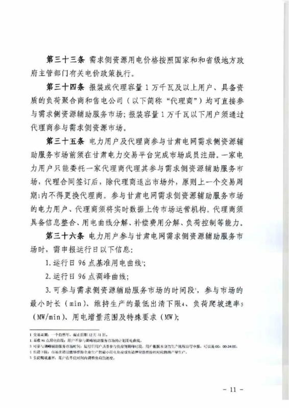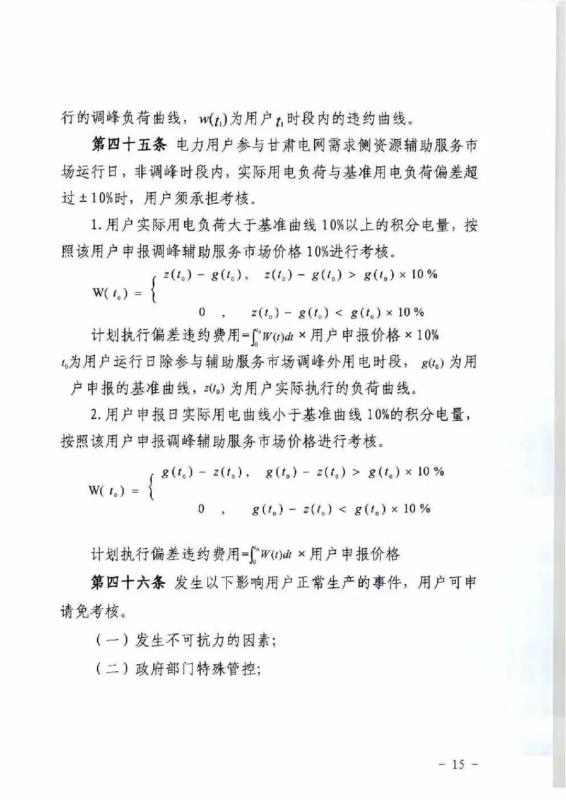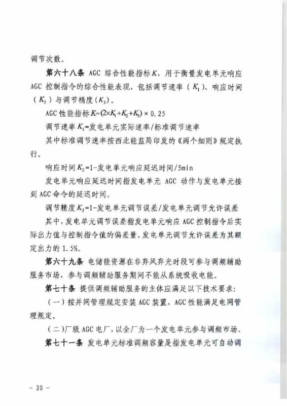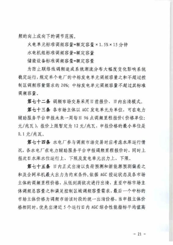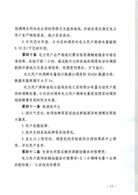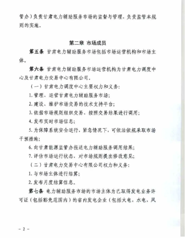 中國(guó)儲(chǔ)能網(wǎng)訊:4月10日,國(guó)家能源局甘肅監(jiān)管辦公室發(fā)布關(guān)于征求《甘肅省電力輔助服務(wù)市場(chǎng)運(yùn)營(yíng)規(guī)則(征求意見稿)》意見的函,意見稿規(guī)則較2019年發(fā)布的暫行補(bǔ)償價(jià)格有較大改變。調(diào)頻輔助服務(wù)補(bǔ)償價(jià)格由上限15元/MW下調(diào)至12元/MW。調(diào)峰輔助服務(wù)申報(bào)價(jià)格非現(xiàn)貨期間為0.5元/kWh,現(xiàn)貨期間為0.3元/kWh。