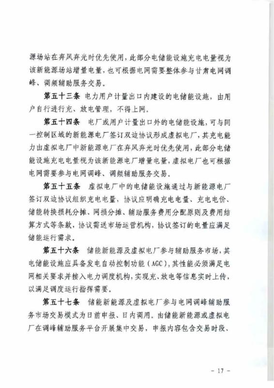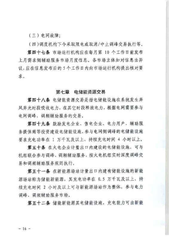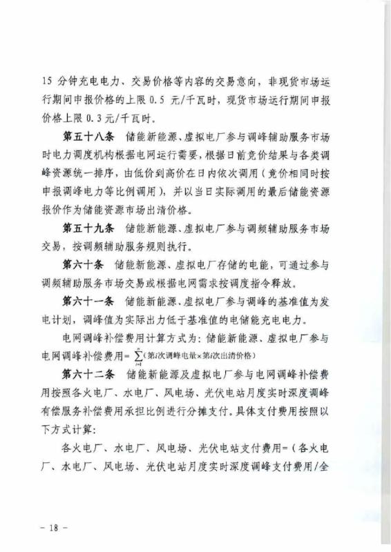 而電力用戶計(jì)量出口內(nèi)建設(shè)的電儲(chǔ)能設(shè)施,由用戶自行進(jìn)行充放電管理,不得上網(wǎng)。電廠或用戶計(jì)量外的電儲(chǔ)能設(shè)施,可與同一區(qū)域的新能源電廠簽訂雙邊協(xié)議形成虛擬電廠,虛擬電廠也可參與調(diào)峰、調(diào)頻輔助服務(wù)交易。其中雙邊協(xié)議應(yīng)明確充電電量、充電電價(jià)、儲(chǔ)能轉(zhuǎn)換損耗分?jǐn)?、網(wǎng)損分?jǐn)?、輔助服務(wù)費(fèi)用分配原則及費(fèi)用結(jié)算方式等條款。