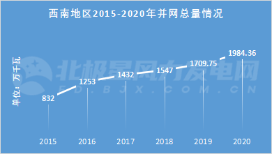 2020年,整個(gè)西南地區(qū)風(fēng)電并網(wǎng)增量近280萬千瓦。云南地區(qū)2020年累計(jì)并網(wǎng)裝機(jī)量約880萬千瓦;四川、重慶2020年增量分別約為100萬千瓦、33萬千瓦,西藏保持0增長。
