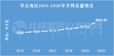 華北地區(qū)堪稱是“三北復(fù)蘇”的窗口。據(jù)國網(wǎng)新能源云數(shù)據(jù)顯示,截至2020年末,蒙東電網(wǎng)風(fēng)電裝機(jī)容量1781.86萬千瓦,據(jù)北極星風(fēng)力發(fā)電網(wǎng)查詢,2020年底蒙西電網(wǎng)風(fēng)電裝機(jī)1947萬千瓦,由此得知內(nèi)蒙古累計(jì)風(fēng)電裝機(jī)量約為3728.86萬千瓦。其次,北京、天津、河北、山西累計(jì)裝機(jī)容量分別為18.7萬千瓦、84.54萬千瓦,2273.53萬千瓦、1955.83萬千瓦。